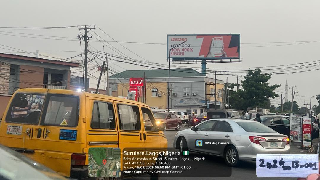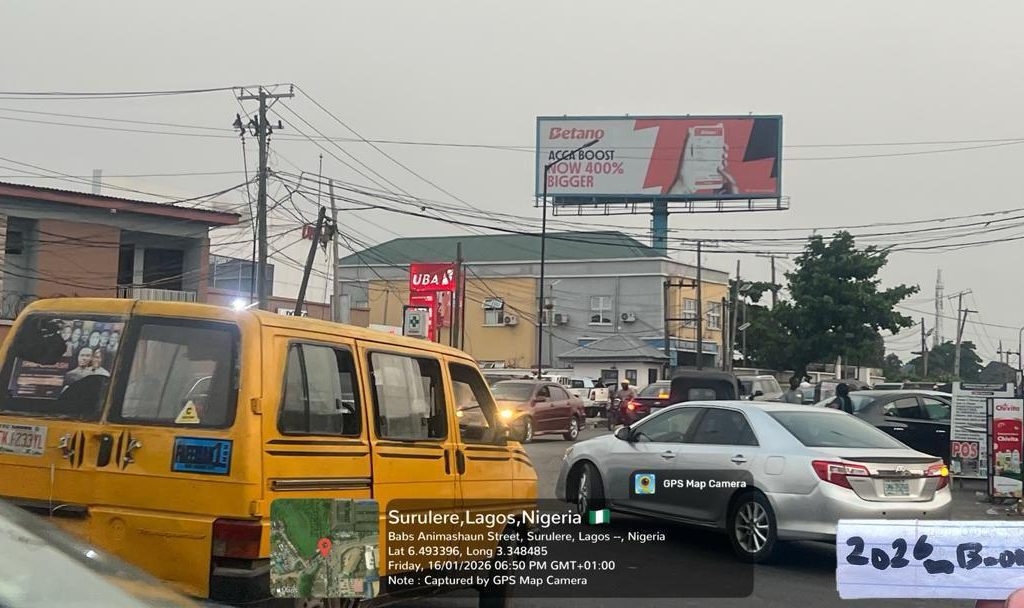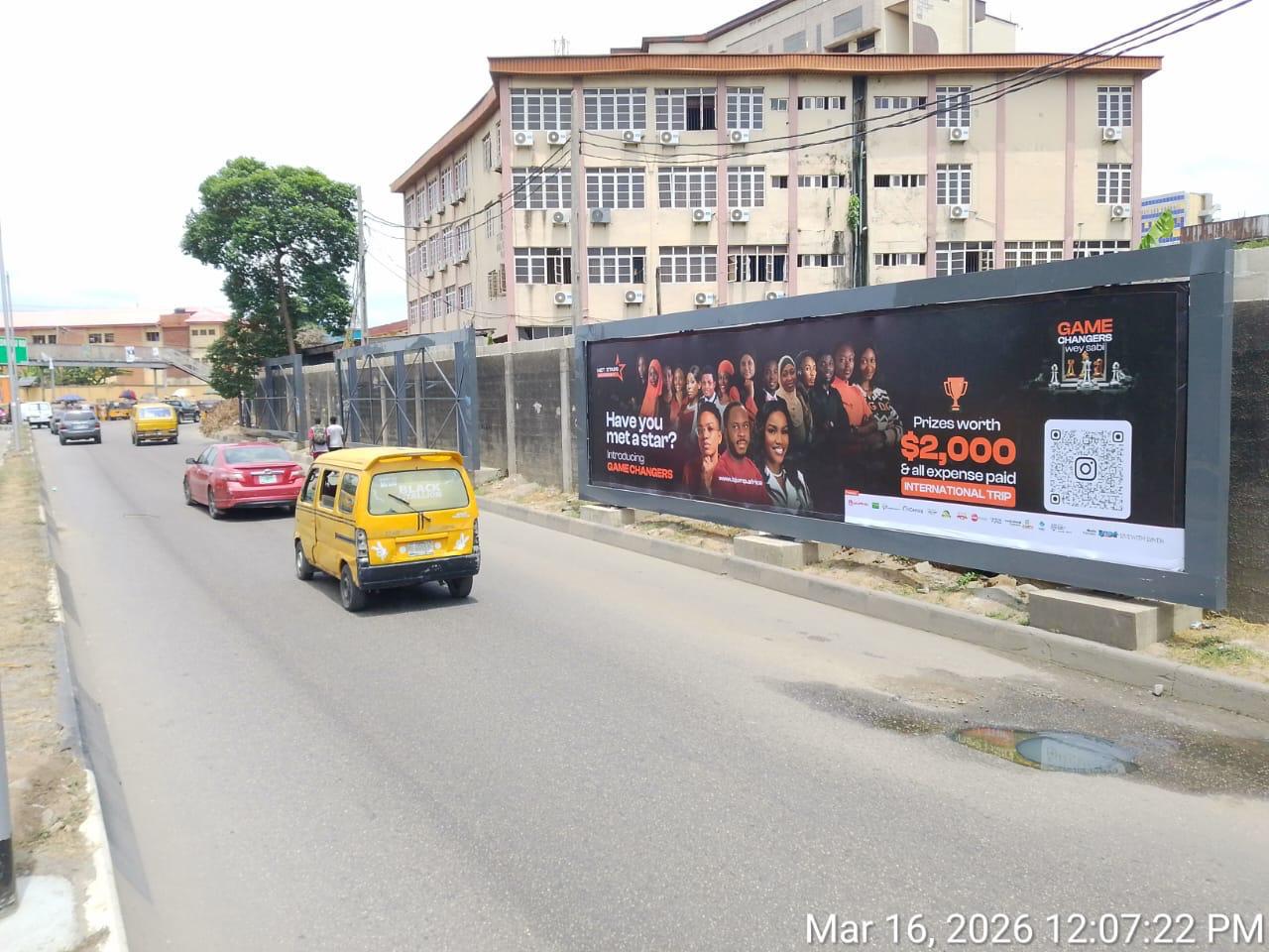 Location: Static free standing board along Muritala Muhammad way Yaba facing ozone cinema road . FTF & FTT OZONE CINEMA ROAD/OYINGBO MARKET /SABO /HERBERT MAUCAULAY/YABA MARKET TOWARDS MOBOLAJI JOHNSON TRAIN STATION / EBUTE META /CMS/3MB /COSTAIN