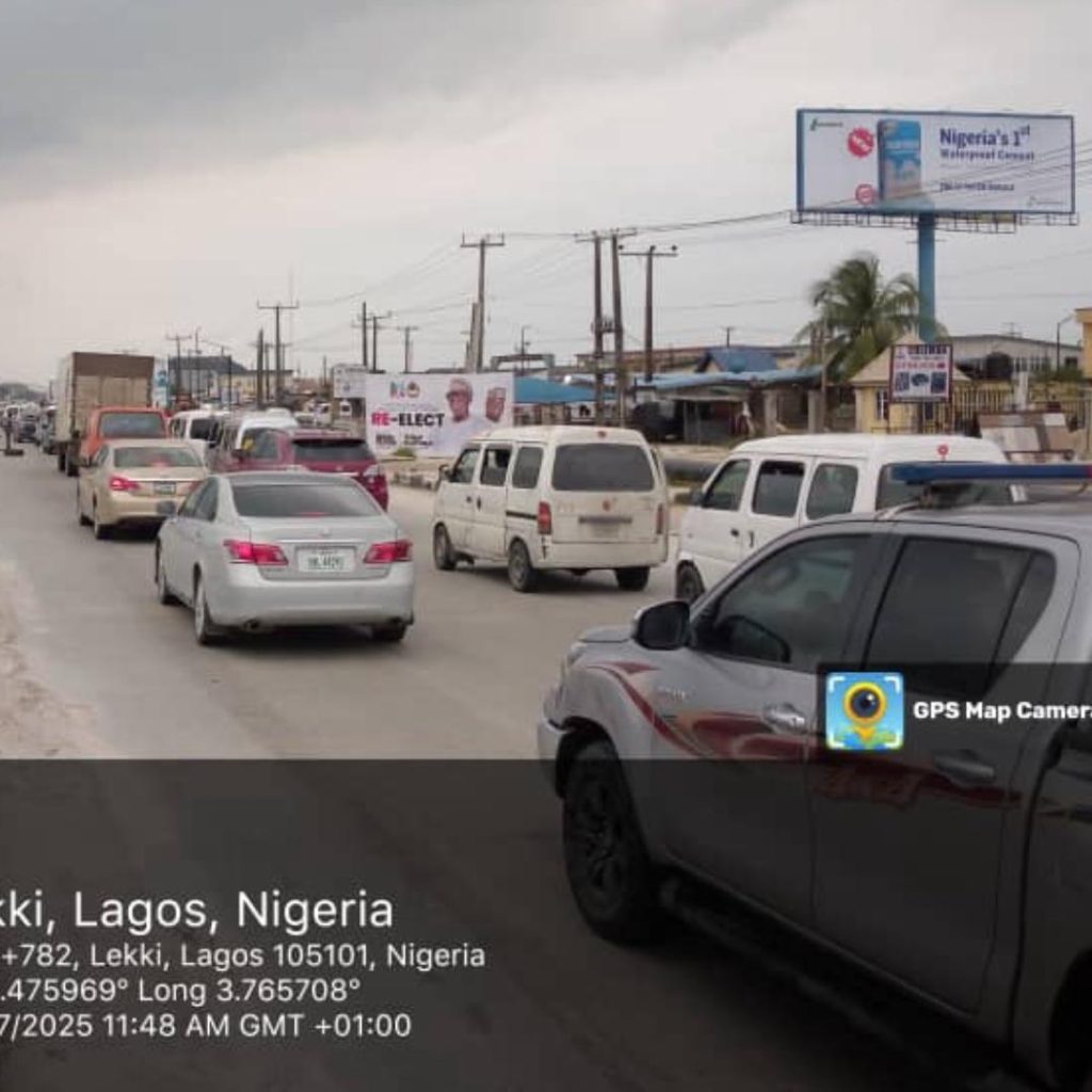 Double face Unipole board inside Elemoro Area J police command Lakowe market /Elemoro palace, Sangotedo, Novare mal, Sky mall Lekki – Epe Expressway .