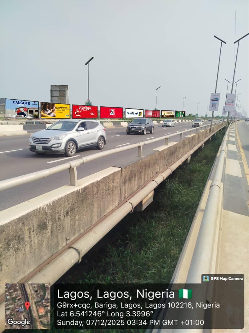 Location: Static wall mount along third mainland bridge close to Ilubirin & emergency ambulance police parking spot .